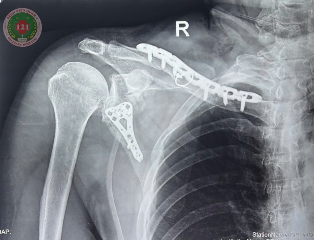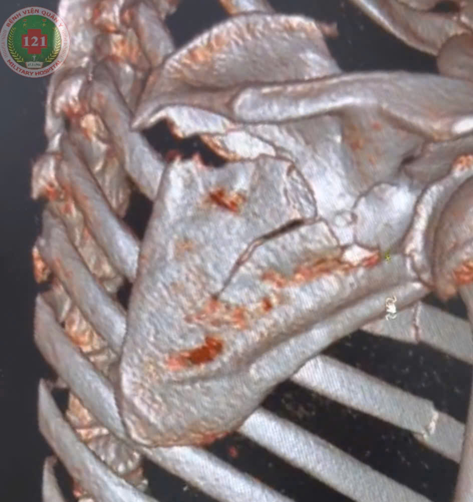 Ngày 24/01/2026, với sự hỗ trợ chuyên môn từ Bệnh viện Chấn thương chỉnh hình TP. Hồ Chí Minh, Bệnh viện Quân y 121 đã thực hiện thành công ca phẫu thuật nẹp vít khóa kết hợp xương bả vai và xương đòn cho một nam bệnh nhân 74 tuổi có tiền sử tăng huyết áp. Bệnh nhân nhập viện cách đây 09 ngày sau một vụ tai nạn giao thông, trong tình trạng vai phải sưng nề, bầm tím, vận động hạn chế. Bệnh nhân được chụp Xquang và chụp cắt lớp vi tính dựng hình 3D xác định gãy 1/3 giữa xương đòn phải, xương bả vai phải và 03 xương sườn. Sau khi được thăm khám và hội chẩn, các bác sĩ xác định cần tiến hành phẫu thuật nẹp vít khóa kết hợp xương bả vai và xương đòn để phục hồi chức năng vận động cho bệnh nhân.