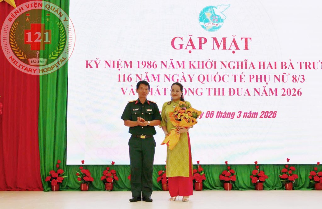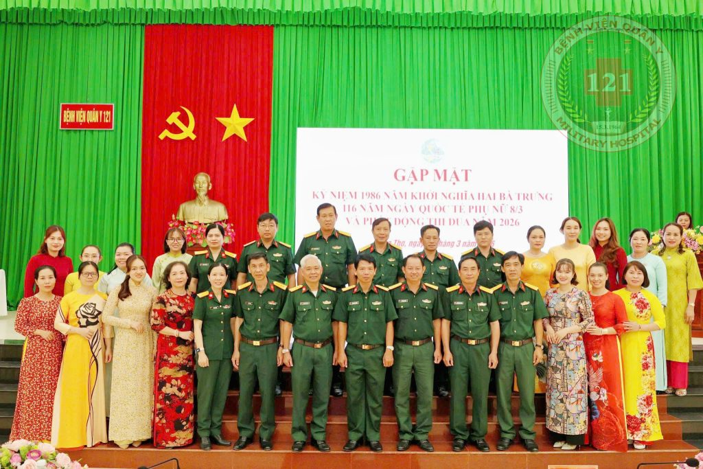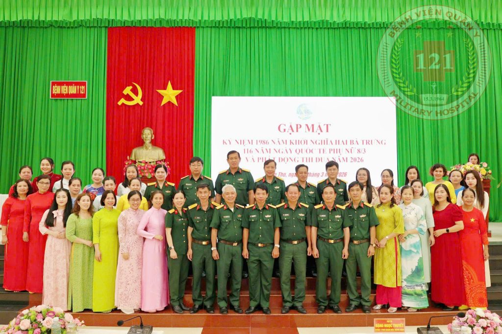 Ngày 06/3, Bệnh viện Quân y 121 tổ chức buổi gặp mặt kỷ niệm 116 năm Ngày Quốc tế Phụ nữ (08/3), 1986 năm Khởi nghĩa Hai Bà Trưng, 33 năm Ngày truyền thống Phụ nữ Quân đội (10/3) và phát động thi đua năm 2026. Đại tá BSCKII TTƯT Đặng Ngọc Thuyết, Bí thư Đảng ủy, Phó Giám đốc Bệnh viện chủ trì buổi gặp mặt.