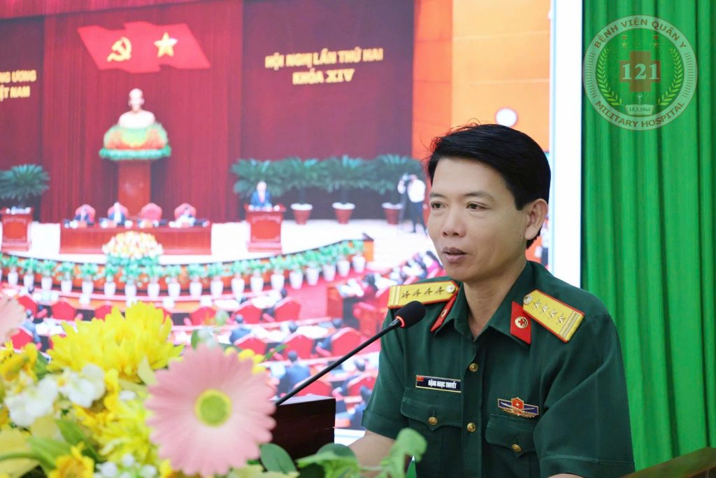 Ngày 15/4, Đảng ủy Bệnh viện Quân y 121 tổ chức hội nghị thông báo nhanh kết quả Hội nghị lần thứ hai Ban Chấp hành Trung ương Đảng khóa XIV. Đại tá BSCKII TTƯT Đặng Ngọc Thuyết, Bí thư Đảng ủy, Phó Giám đốc Bệnh viện chủ trì Hội nghị.